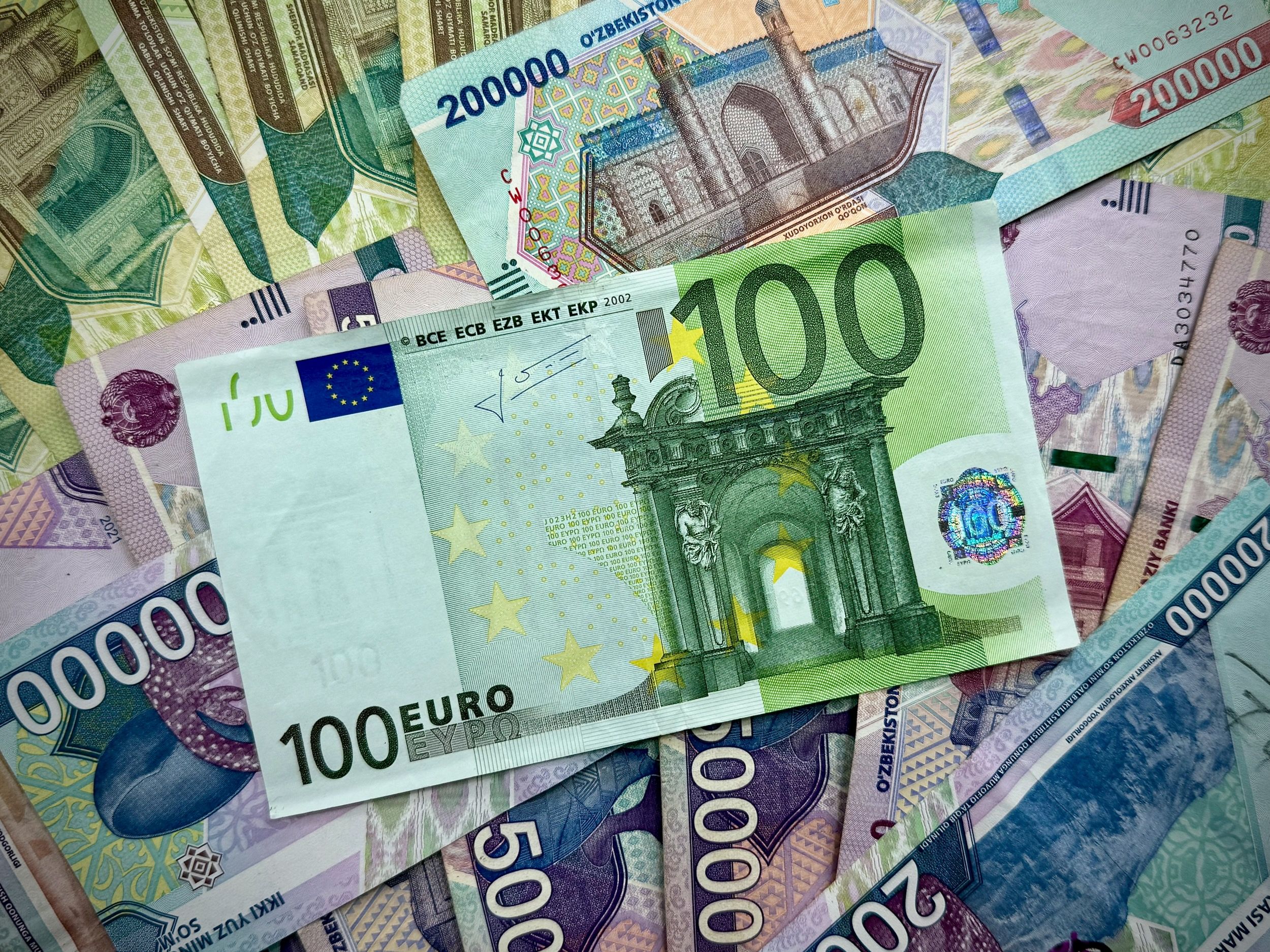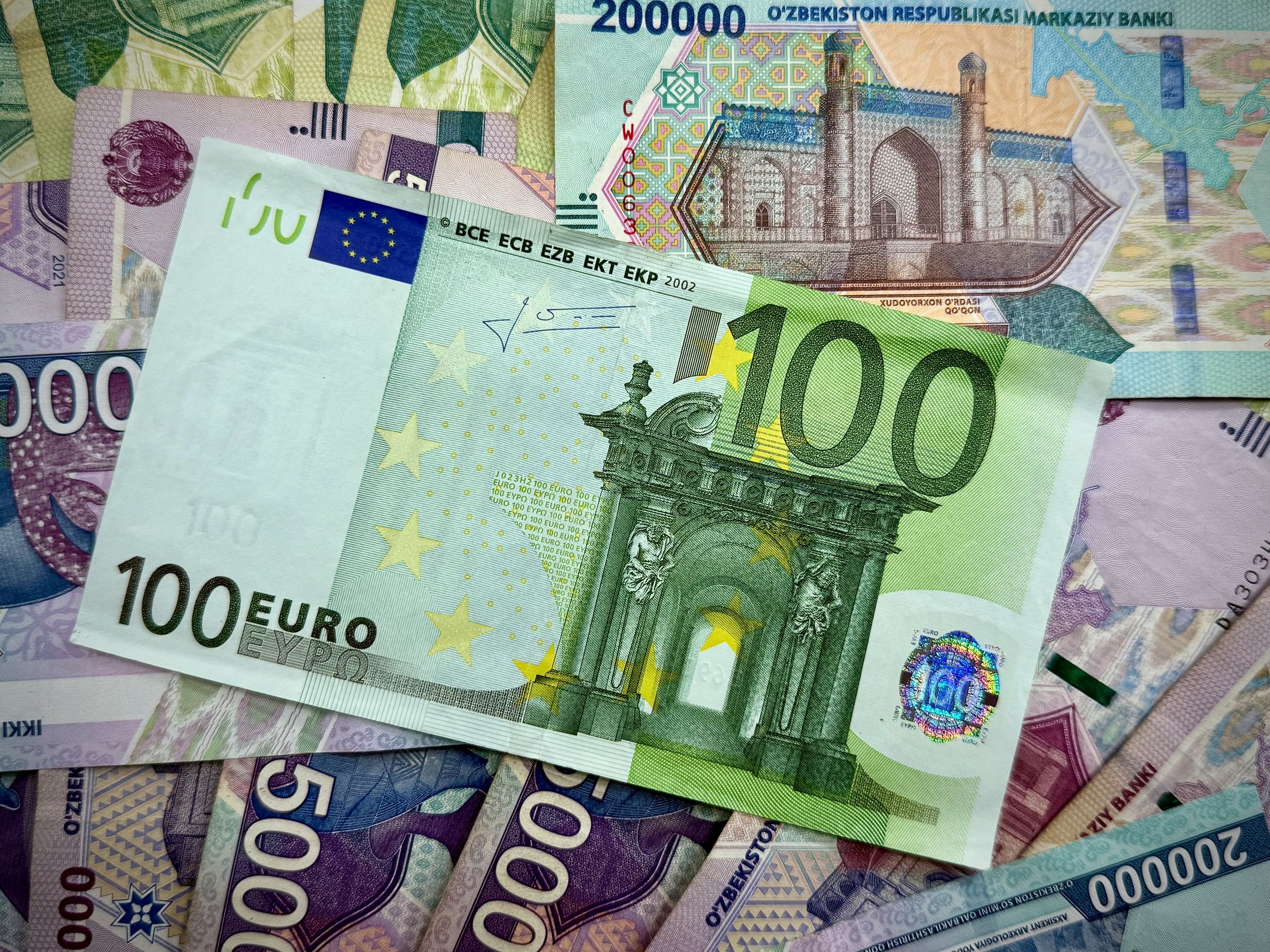 Разница между этими курсами — спред — это основной заработок банка на обменной операции. По евро в Ташкенте спред обычно больше, чем по доллару: EUR — не настолько массовая валюта, и банки закладывают чуть более широкую «подушку» на случай колебаний. Это одна из причин, почему сравнение имеет смысл: экономия в 50–100 сум на одном евро при сумме 500–1000 EUR превращается в десятки тысяч сум.